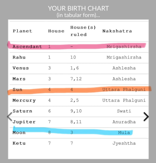 1. 어센던트 (Ascendant) 낙샤트라 (핑크색 표시)