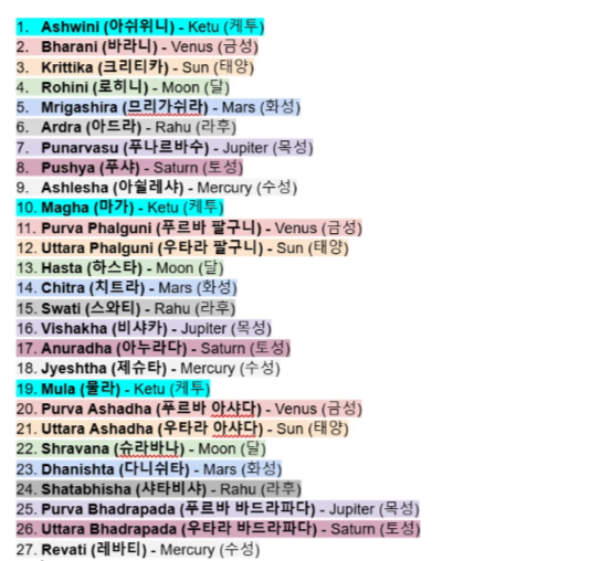 모든 27개의 낙샤트라를 다 가진 사람은 없어요. ㅎㅎ