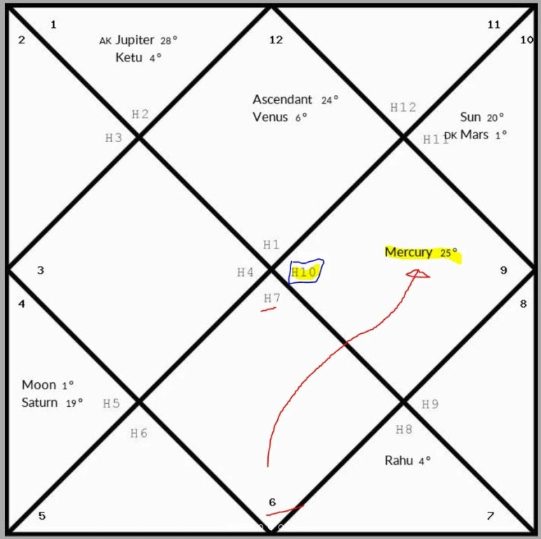 H10 , 10하우스에 있습니다. 그럼 이 차트는 7하우스 로드가 10하우스에 있네요.