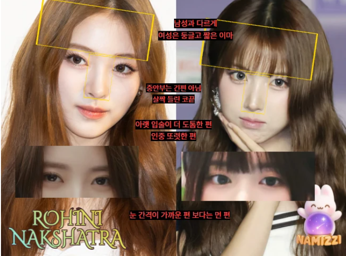 사실 낙샤트라 하나 가지고 얼굴적인 특징이 어느정도 비슷할 수는 있지만 완전 닮았다! 이런 느낌은 주기가 쉽지 않거든요. 근데, 그래도 특징적인 부분들이 비슷한 느낌이 있죠?ㅎㅎ